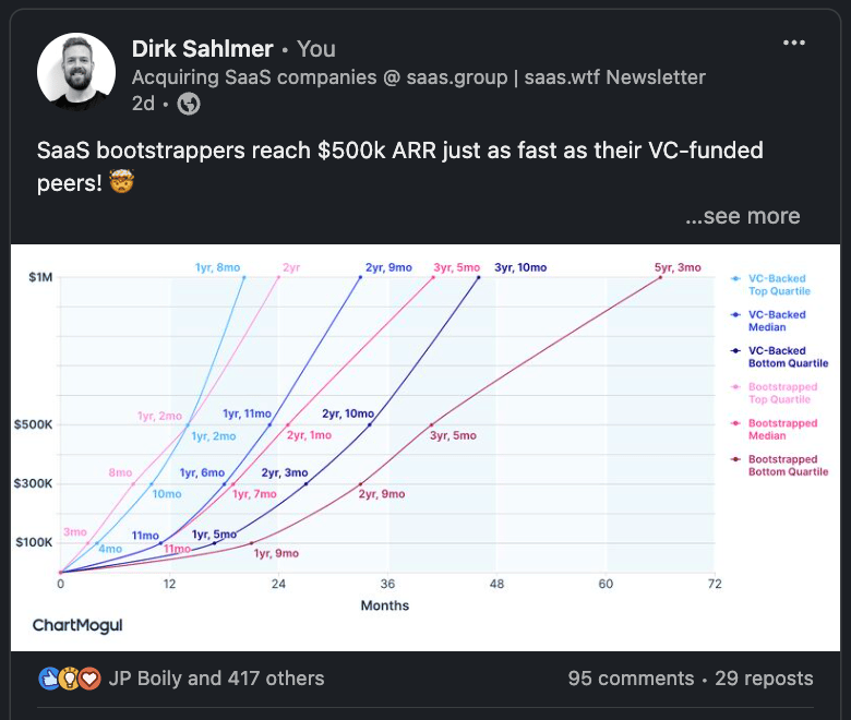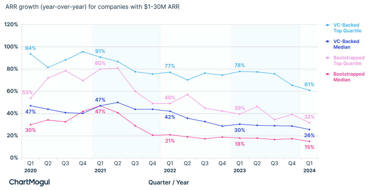 Bootstrappers show more consistent growth than VC-backed SaaS