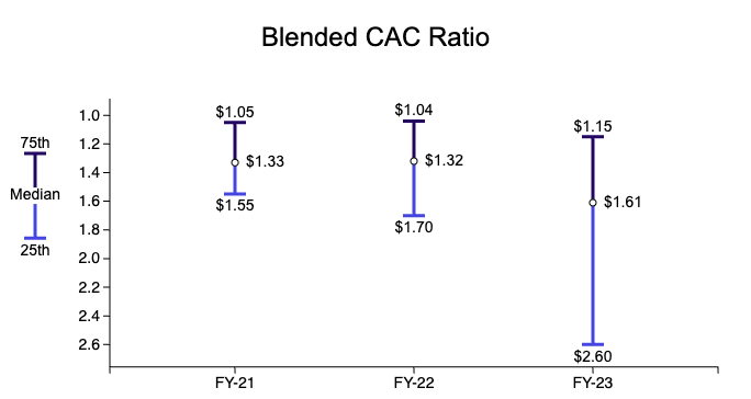 Let's take a simple example: A VC-backed SaaS with an ARR of $1M should ideally grow 200%+ YoY. However, with prevailing Blended CAC ratios and 30% of ARR spent on S&M, you'd only add between 115k and 261k ARR per year (11.5% and 26.1% ARR growth respectively).