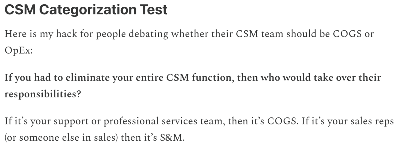 When CSMs do what they are meant to do → S&M. A middle way could be to split the costs appropriately between the two items based on CSMs’ tasks.